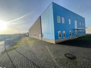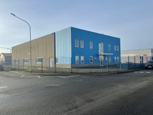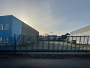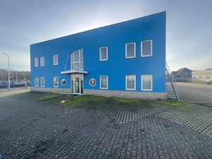 Der Werkstatt- und Lagerhalle ist an ihrer nördlichen Kopfseite auf einer Tiefe von rund 6 ,00 m ein zweigeschoßiger Bürotrakt angegliedert. (210 qm Büro- und Sozialräume). Das Gebäude wurde in massiver Bauweise errichtet und ist mit blauen Aluminiumpanelen verkleidet.
